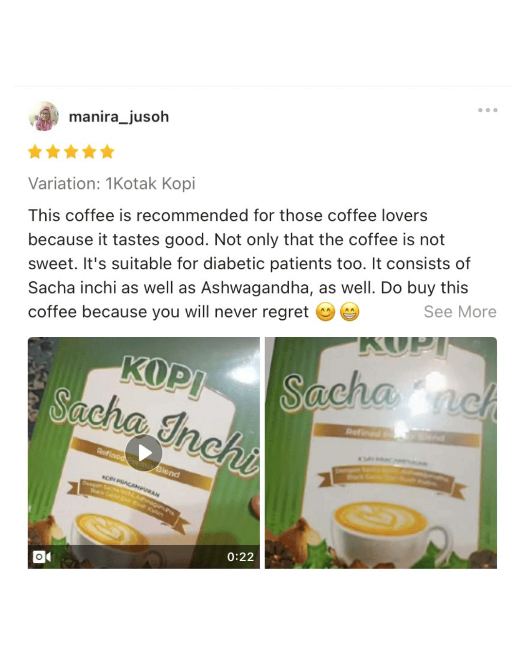 Kopi ini diformulasikan dengan Sacha Inchi, Ashwaganda, dan Buah Kulim untuk meningkatkan tenaga, mengurangkan stres, dan menyokong kesihatan jantung.